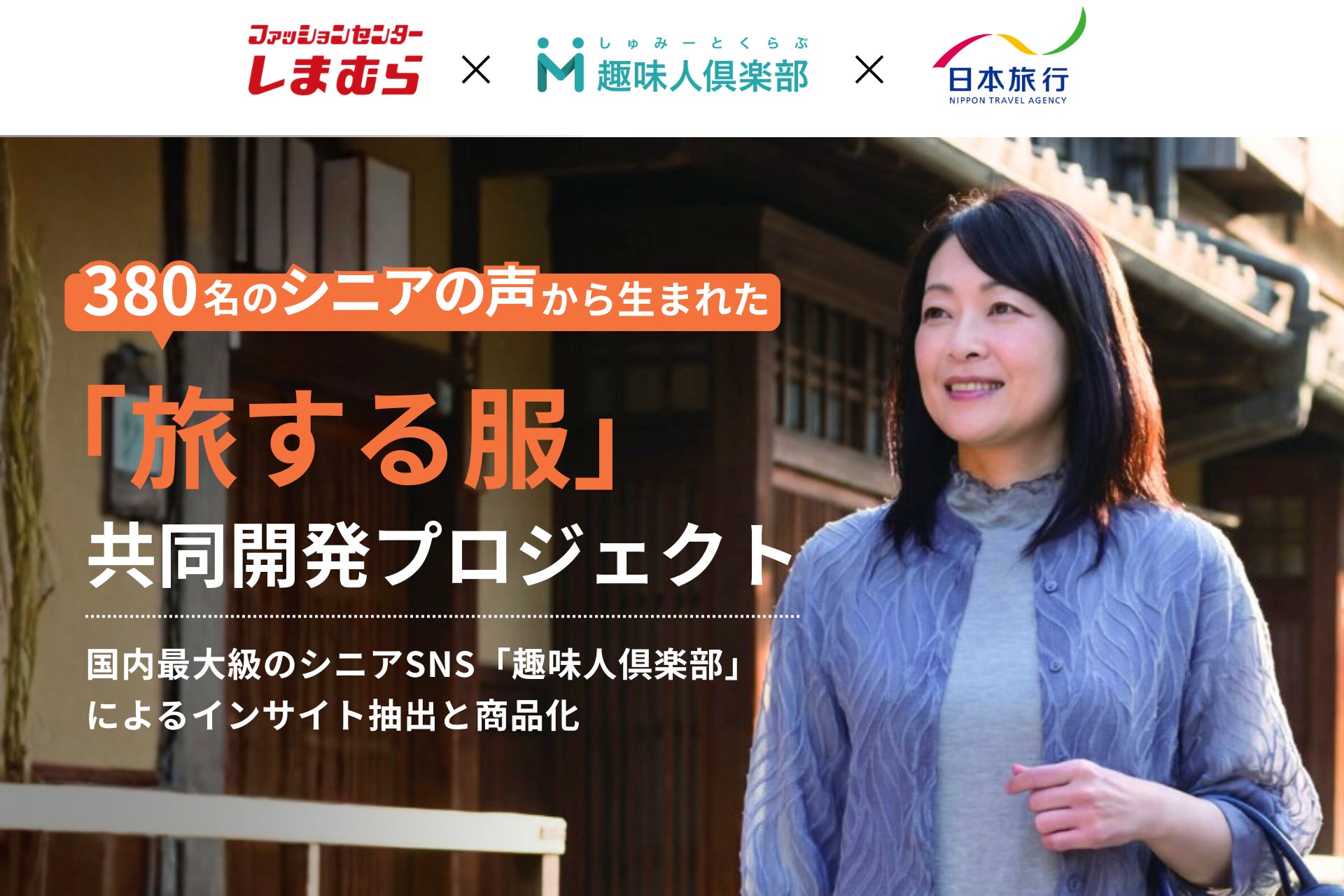 国内最大級のシニア・中高年向けSNS趣味人倶楽部× ファッションセンターしまむら共創型で商品開発を実施。380名のシニアの声から生まれた旅行服を発売。コラボを記念して日本旅行とキャンペーンも実施。