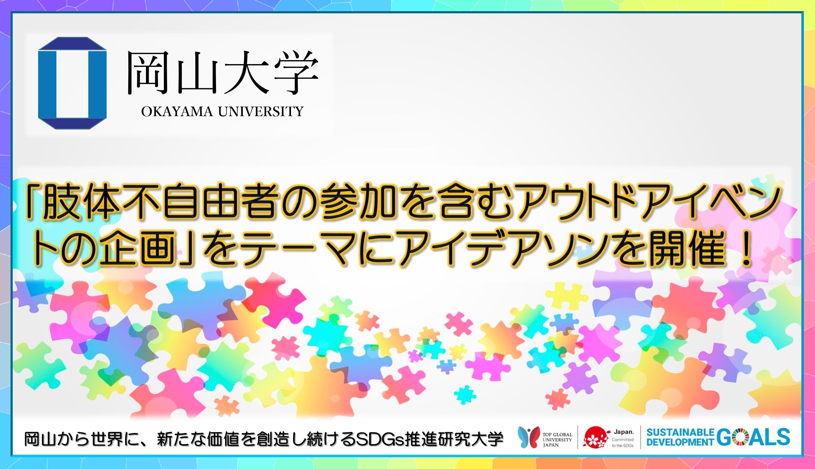 国立大学法人岡山大学(本部:岡山市北区、学長:槇野博史)は、2022年7月21日、教育推進機構の池谷航介准教授による講義「障がい者支援演習①」で、「肢体不自由者の参加を含むアウトドアイベントの企画」をテーマに、学生たちがアイデアソンを行いました。