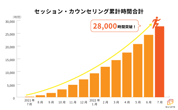 トレーニングの需要は急速に増加しており、2022年7月時点で、カウンセリング・セッション時間の累計は2万8000時間を突破しています。