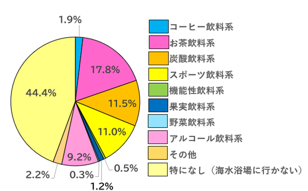 - 海水浴場で一番飲まれていたのは「お茶飲料系」の飲み物