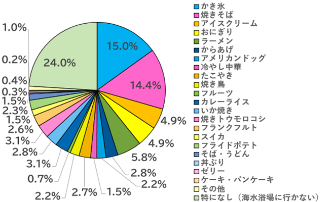 - 海水浴場で人気の食べ物は「かき氷」「焼きそば」