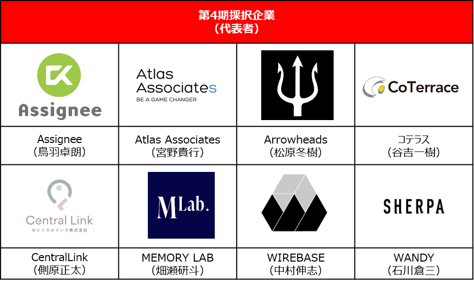 *過去の採択社数 1期生:14社採択 2期生:10社採択 3期生:13社採択