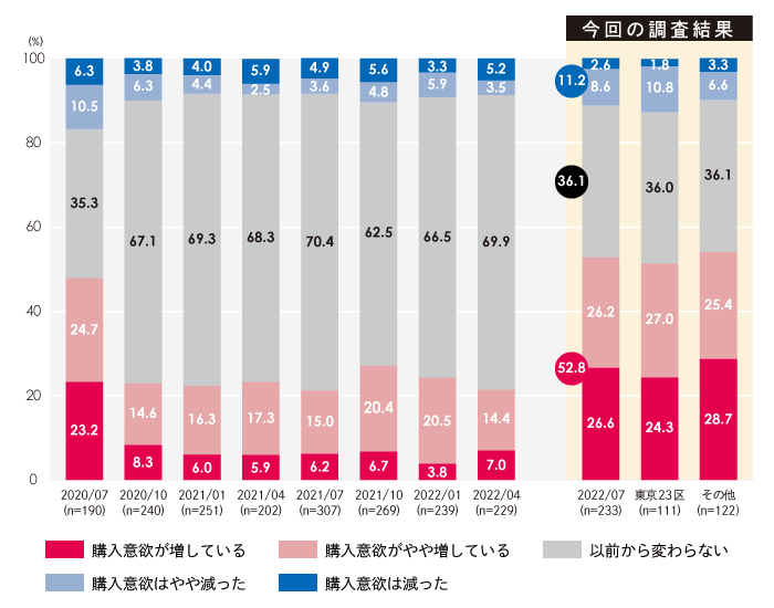 また、全体の50%以上の方が購入意欲は増していると回答し、2020年7月以来の高水準となりました。