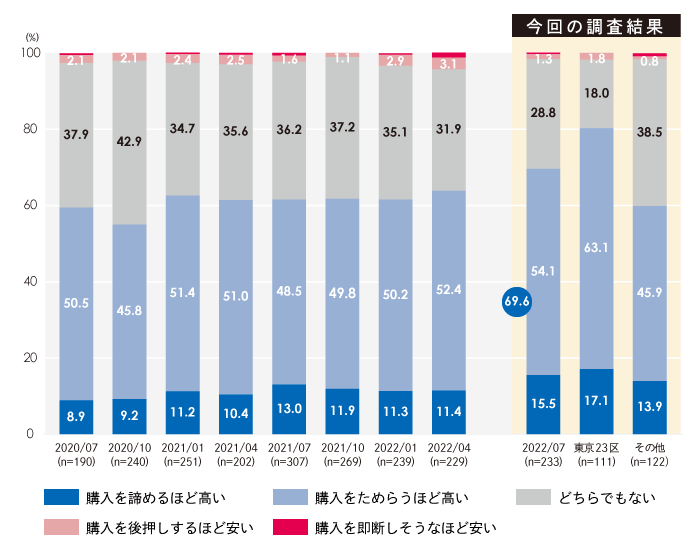 ≪ポイント≫ 都区部では購入を諦める、ためらうほど高いという回答が80%に達した