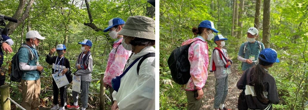 秋田県八峰町にある白神山地・留山の散策では、ガイドさんからの話で、過去に白神山地でも人の手が入り木々が伐採された歴史を学びました。山に木が無くなった事で川の水が減り田畑に水が行き渡らなくなりました。そこで木々の伐採を「止めた」事から留山(とめやま)と言う名前になり、私たちの生活にも白神山地の木々が重要だという事を勉強しました。そしてブナの木1本で年間8トンの水を保水する事、その水が15年ほどかけてゆっくり海に流れ着く事、白神山地にはたくさんの腐葉土がありそこにはミネラルなどたっぷりの恵みが詰まっていて、そこから流れ出す水が海藻などに栄養を与えている事を知り、白神山地の重要性を認識しました。子供たちは森の大切さを知り、「自分たちもこの白神山地を未来に残していこう」と話していました。
