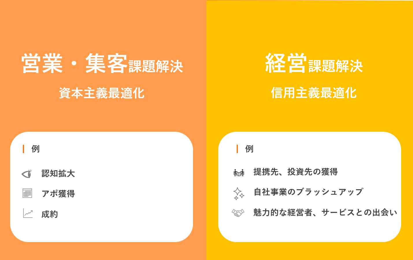 上記、価値の進化と創造に伴い、世の中の経営者向けの支援や、経営者向けの会員ビジネスを提供している会社様、BtoBセールス支援している企業様等と積極的に連携していきたいと考えています。