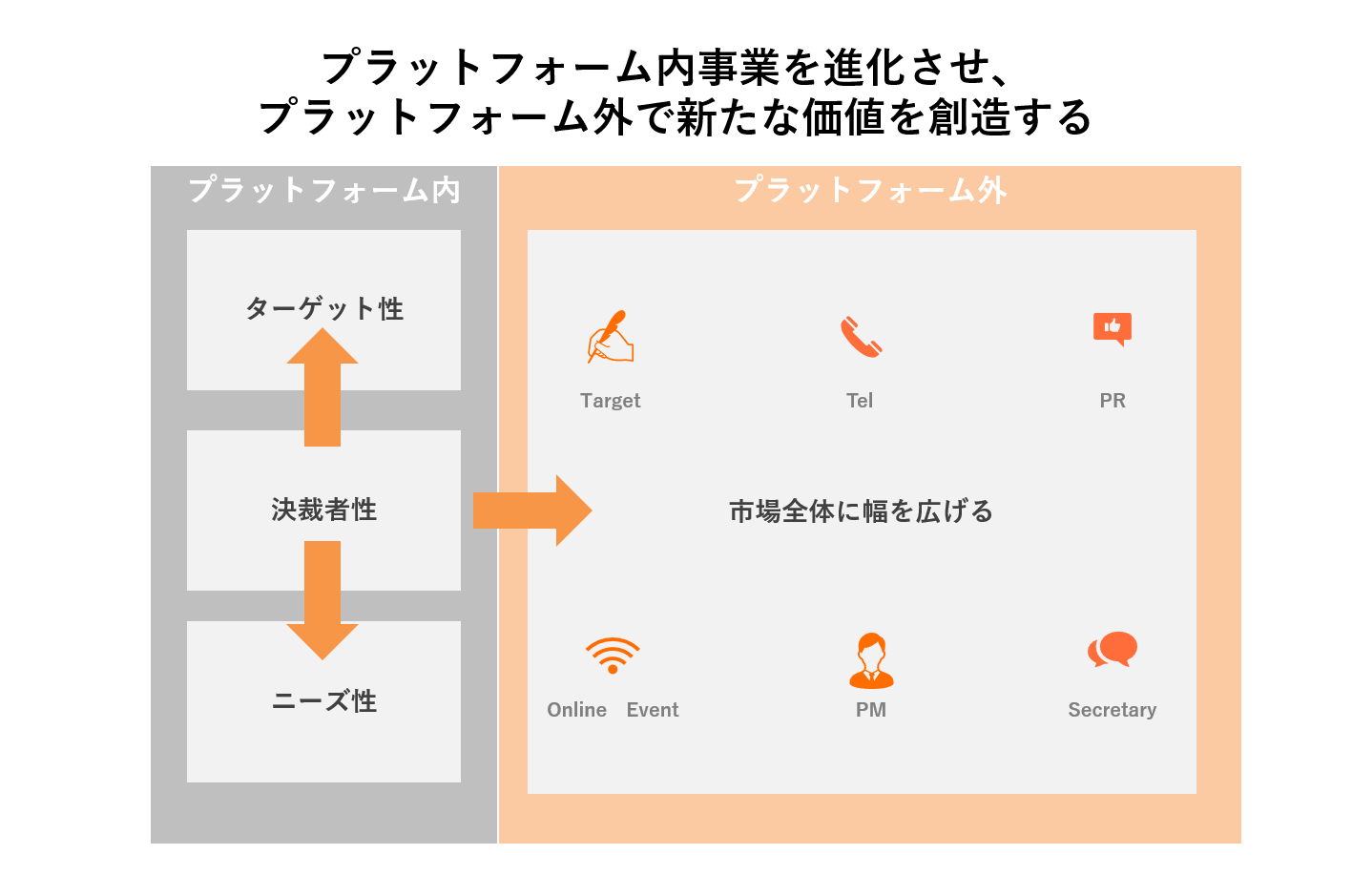 - ソフトな面での登録決裁者数の増加→マーケティング強化、購買ニーズの獲得、収集
