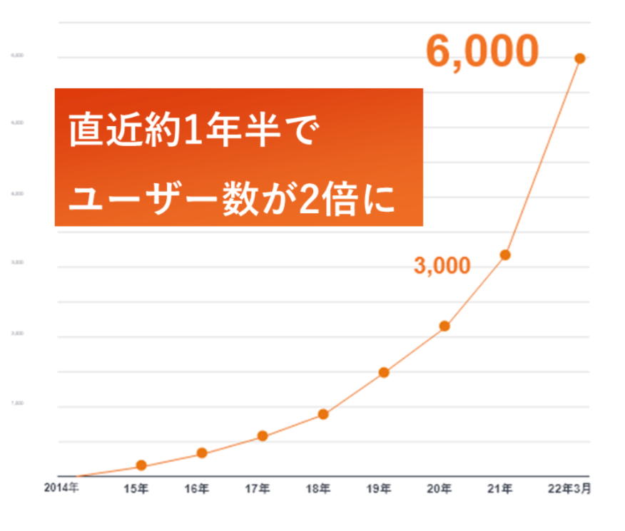 ・サービス開始から6年半ほどでONLY STORYの無料会員数が約3000社だったところ、この1年半で会員数が2倍以上、6000社を超えるまでになりました。