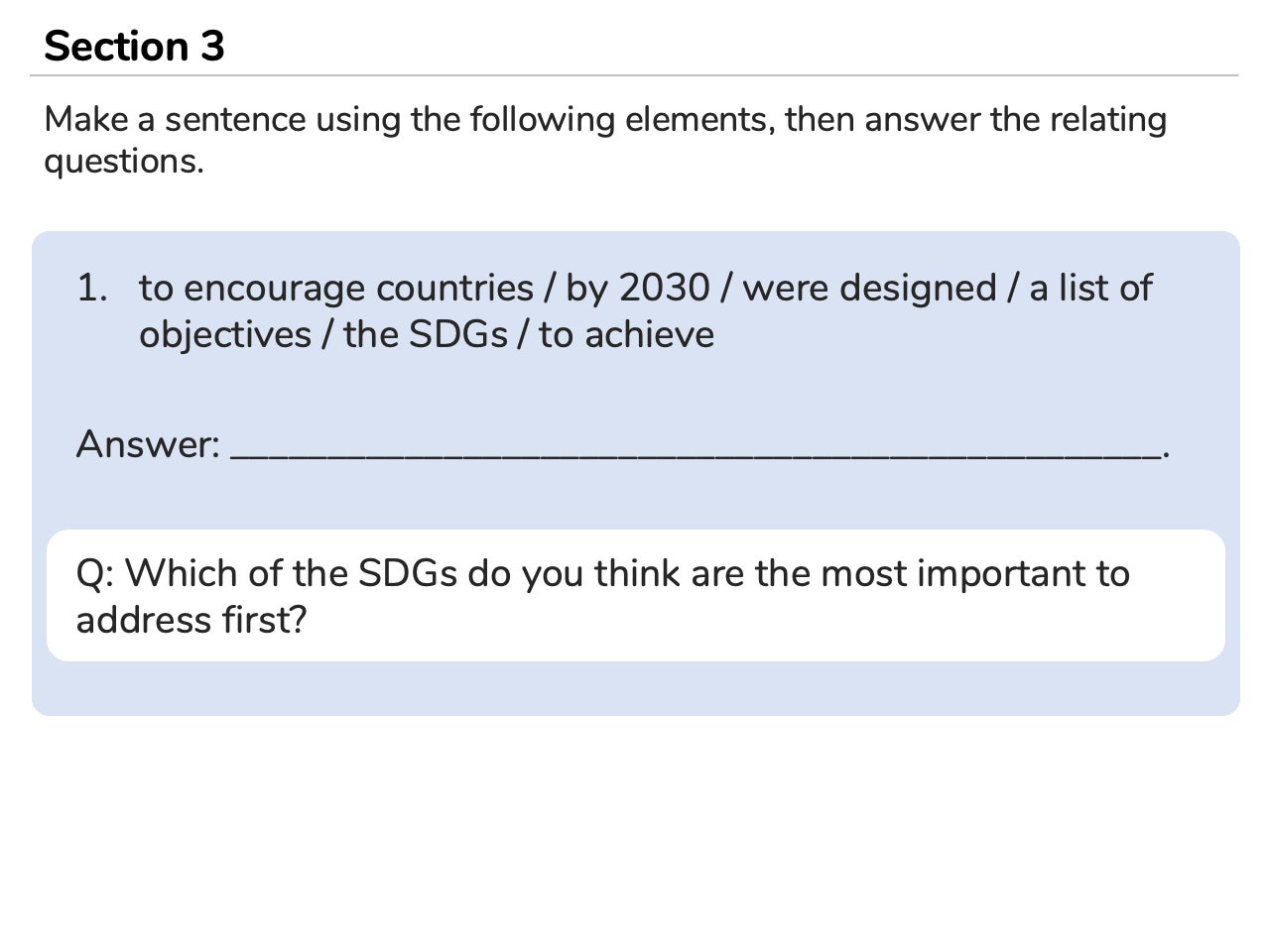 ▼その①「今話題のSDGsについて英語で意見を言えるようになる」