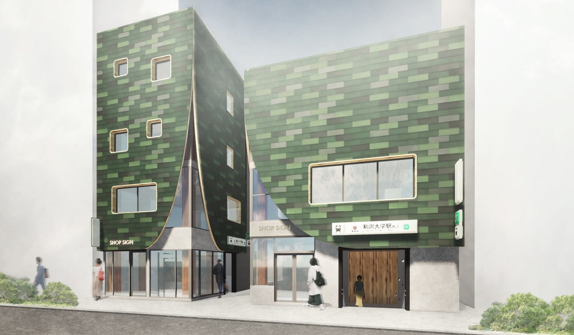 また、本物件を含む駒沢大学駅リニューアル工事は、2024年夏(予定)の竣工に向け「UNDER THE   PARK」をコンセプトとし、地域の憩いの場である都立駒沢オリンピック公園の最寄り駅として、公園とともにあるライフスタイルをイメージするデザインを取り入れた空間の創出を目指します。駒沢大学駅を1本の木に見立て、本物件を含めた同駅出入口3棟の駅ビル外観は、まちのシンボルとなる玄関口として、木の葉をイメージするデザインにしています。