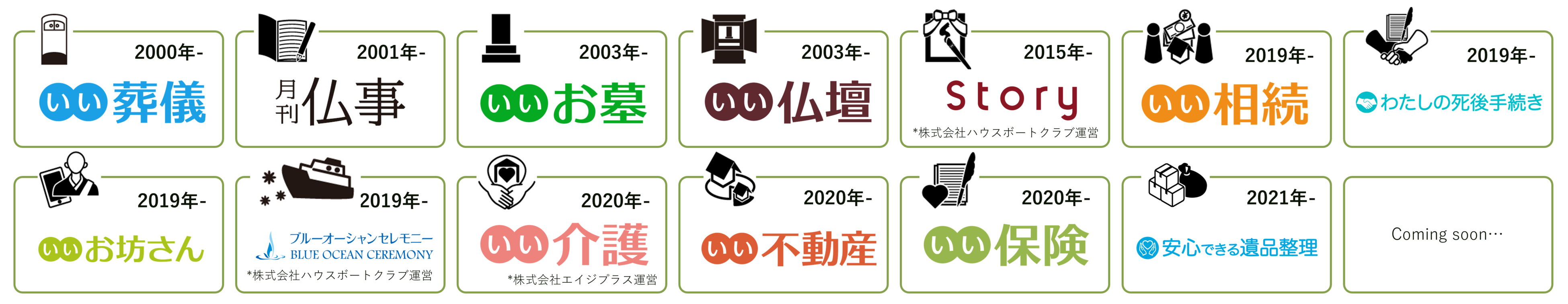 1984年に仏教書の出版を目的として創業しました。現在は供養・終活専門企業として「いい葬儀」、「いいお墓」、「いい仏壇」、「いい相続」など13のサービスを運営し、お客様センターやポータルサイトを通じた相談・情報提供を行っています。終活インフラを標榜し、「明るく前向きな社会を実現するため、人々が悔いのない人生を生きるためのお手伝いをする」ことを使命としています。お金のこと(遺言・相続など)、からだのこと(介護・終末期医療など)、家族のつながり(葬儀・お墓など)の希望や課題を解決し、高齢社会を活性化することが、未来の希望になると考えています。