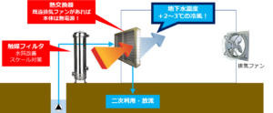 当社の大風量換気システムは、地下水などと空気の熱交換だけで空気を冷却する究極のエコ空調です。