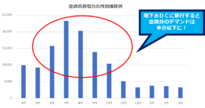 既設の空調機の負荷軽減にもなるため、地下水ダイレクトクーラーのデマンドカットに対する効果は非常に大きいものとなります。