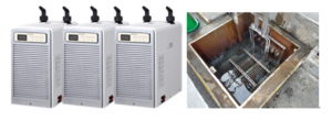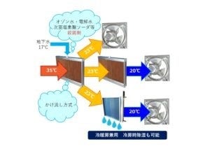 冷房の場合はMAX35度を28度にさげるので、7度差程度の熱であるため地下水の15~17度があれば、ほぼエネルギー的には賄えます。それか本システムでは小型のチラー(1kw以下)で16馬力出力が出せるものも完成しております。
