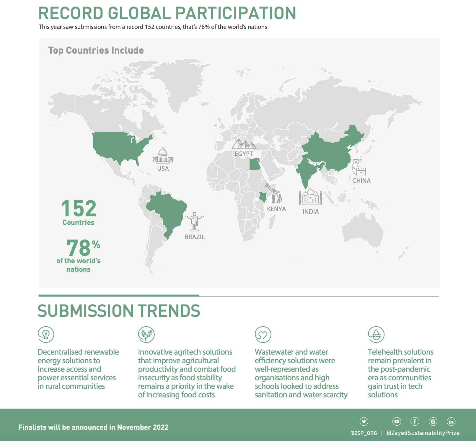 ザーイド・サステナビリティ賞の受賞者は、2023年1月16日にアブダビ・サステイナビリティ・ウィークの一環として開催される2023年ザーイド・サステナビリティ賞授賞式で発表される予定です。