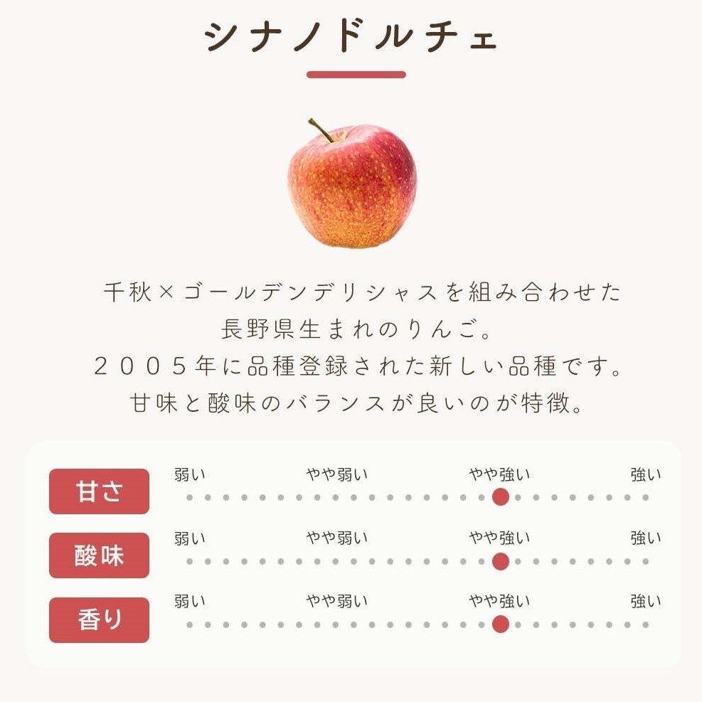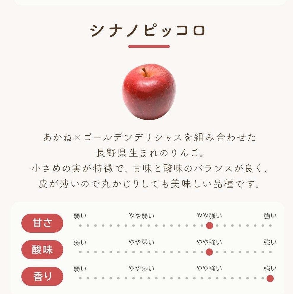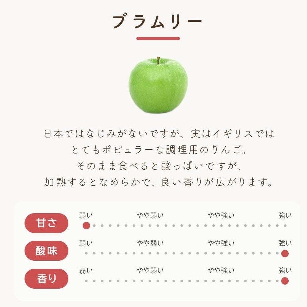 「ブラムリー」、「シナノピッコロ」、「シナノドルチェ」、「秋映」の4種類の個性的なりんごを組み合わせて、自分だけのオリジナルりんごジュースをお楽しみください。