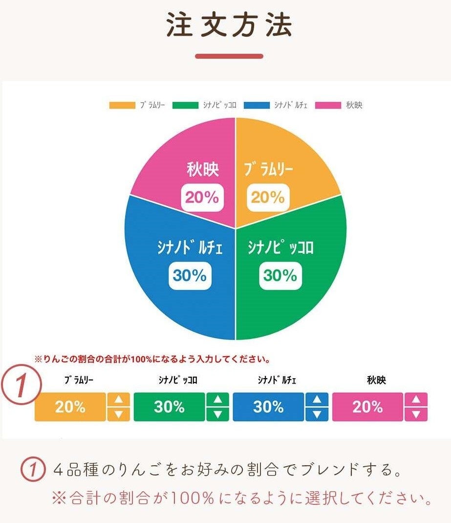 ・Web上で4種類のりんごの合計が100%になるように配分を選んでください。