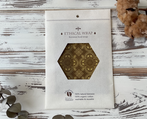 オーガニックコットンを使用し、環境に配慮した方法でEthical wrapオリジナルデザインをプリントしています。天然樹脂は一般的な工業用ではなく漢方用を、ココナッツオイルも食用のオーガニックという高品質なものを使用しています。 そして、蜜蝋は北海道と大阪の養蜂家さんから直接自然巣のものを使用しています。