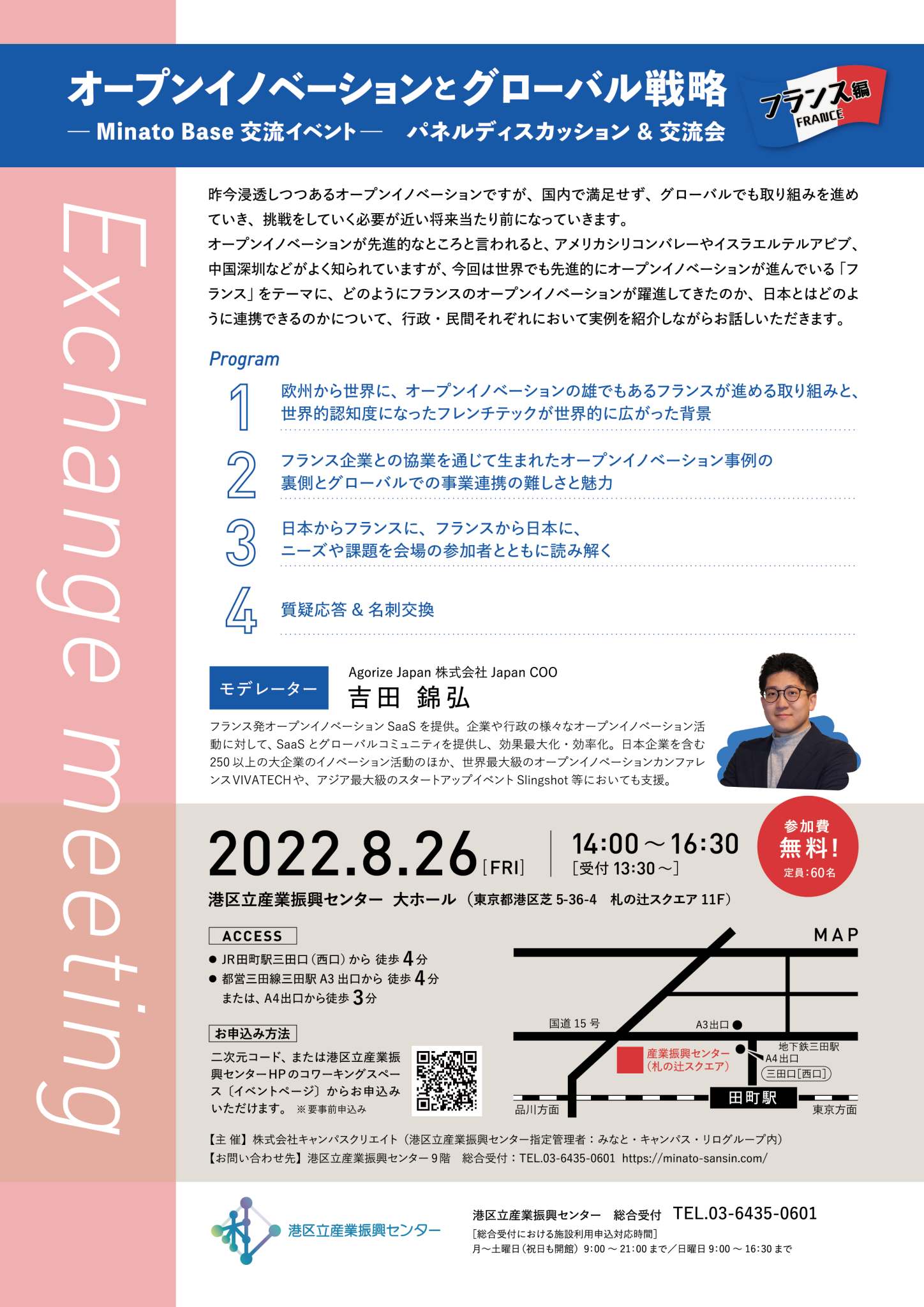 詳細URL:オープンイノベーションとグローバル戦略 フランス編!【Minato Base 交流イベント】