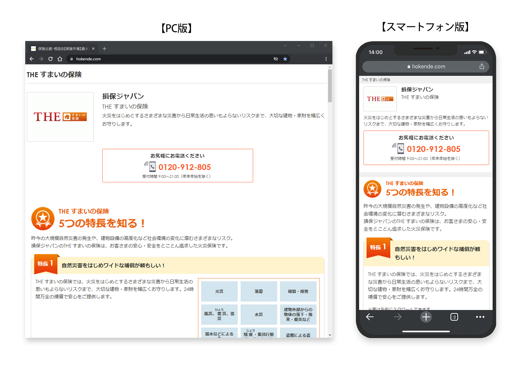 保険選びサイト「保険市場」に掲載を開始した損保ジャパンの『THE すまいの保険』は、対面販売でお申し込みいただける保険商品です。「保険市場」PCサイトおよびスマートフォンサイトにて、商品の詳細をご確認いただけます。