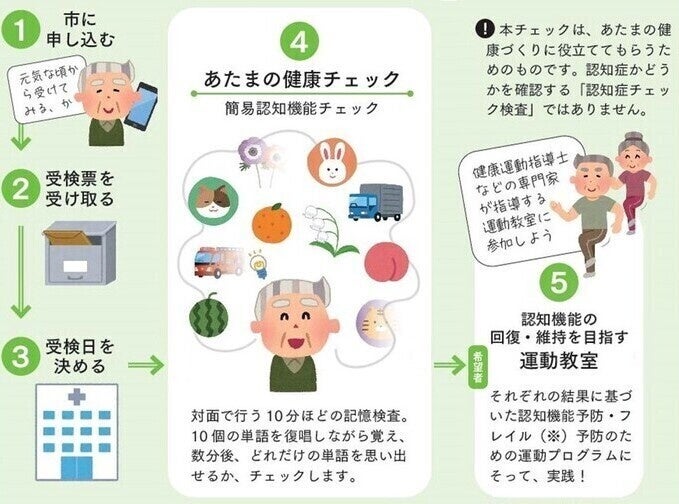 参 加: ① 市内の指定医療機関で「あたま健康チェック®」を受検いただきます(事前予約必要)