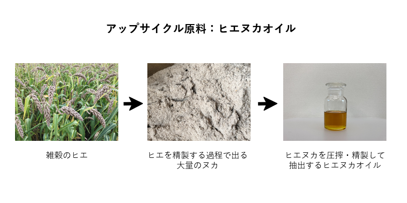 また、同クレンジングオイルでは、新規原料として、雑穀のヒエを精製する過程で出る副産物のヒエヌカをアップサイクルした原料である「ヒエヌカオイル」の同時採用が決定しました。