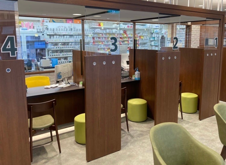 2名様でもゆったり座れ、プライバシーに配慮した投薬カウンターを設置しております。個室ブースも完備しておりますので、お身体の不調やお薬についてのお悩みなども安心してじっくり相談することができます。