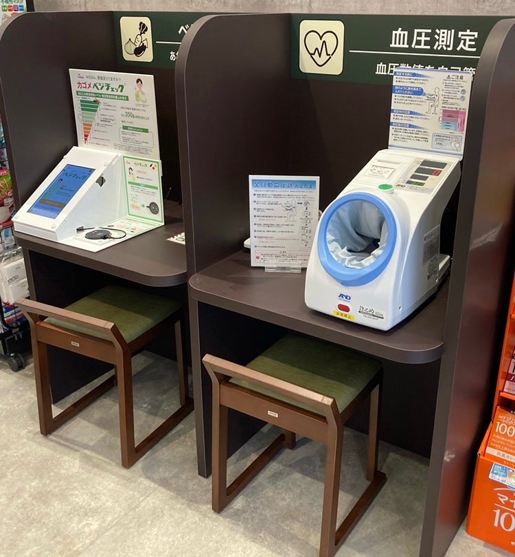 同店は、ゆったりと落ち着いた雰囲気の待合室で、血圧計、野菜の摂取目安量を簡単にチェックできる機器「ベジチェック」を設置しており、患者様が気軽にお薬について相談しやすい薬局、また、処方せんをお持ちでないお客様でも気軽に立ち寄れる空間を目指しました。
