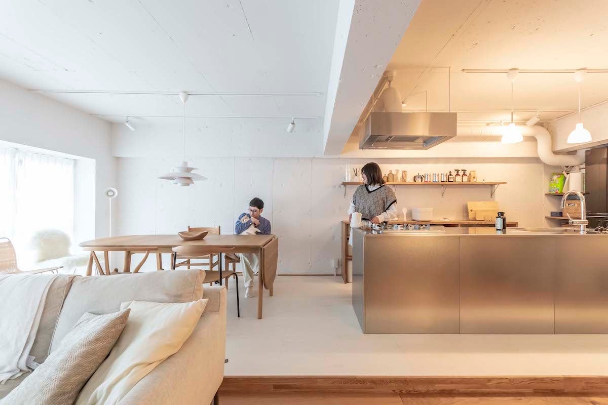 空間は選び抜いた家具が映えるよう、白・木・シルバーを基調としたシンプルなデザイン。夫婦が長い時間を過ごすLDKは贅沢に広さをとりました。