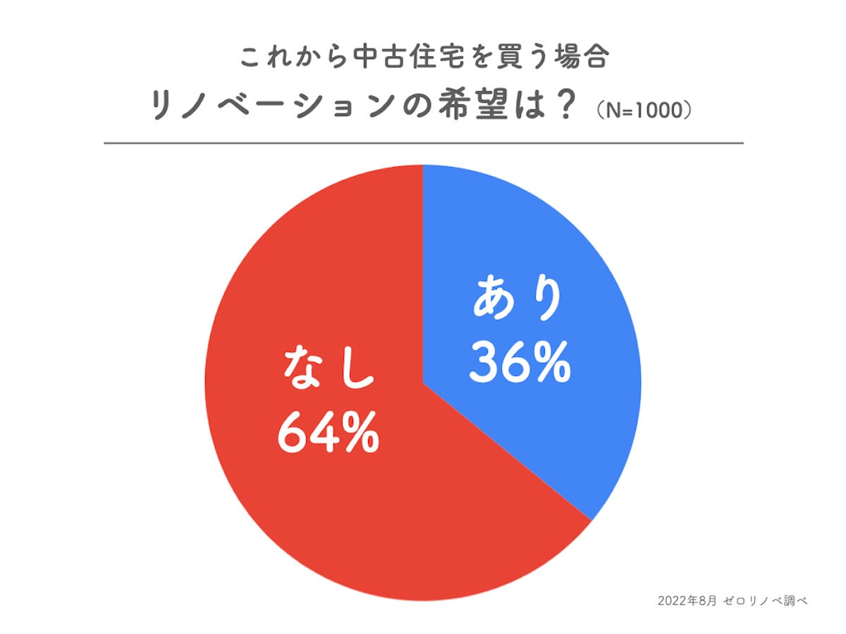 ■中古住宅を購入する場合、リノベーションの希望は「あり」が36%、「なし」が64%。