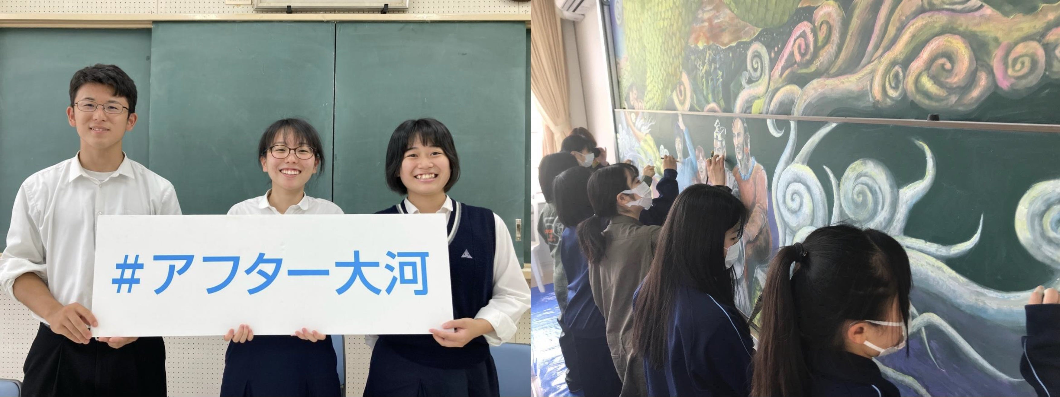 福知山高校の生徒が大河ドラマ『麒麟がくる』で活気づいたまちの盛り上がりを持続させるために発案したプロジェクトであり、2021年からスタートしました。「#アフター大河」を合言葉に、大河ドラマの舞台や題材になった地域の高校に、キーワードを入れたパネルをバトンのようにつないで、各地で盛り上がるイベントに取り組んでもらうというものです。高校生を対象にした問題解決・提案型の全国大会「デザセン2021」で上位10傑にも入りました。