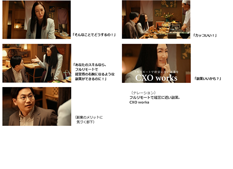 【CXO works「一歩先行くキャリアアップを 副業で」篇】TVCMストーリーボード