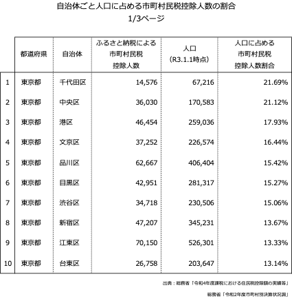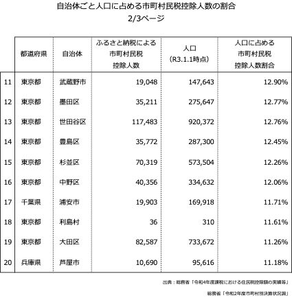 17位の千葉県浦安市、20位の兵庫県芦屋市以外は全て東京都の自治体となりました。東京都の特別区では世田谷区のふるさと納税利用者数が最も多くなりました。