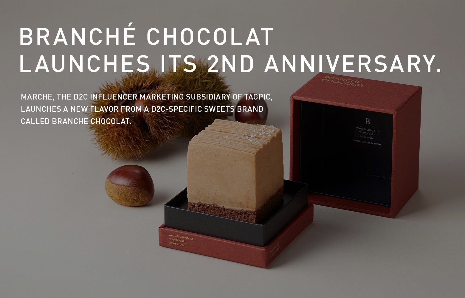 日本及び東南アジア圏に、約6,000名を超える国内最大級のインフルエンサー・ネットワークを束ねるSNSマーケティング会社のタグピク株式会社(東京都港区、以下「タグピク」)の子会社マルシェ株式会社(東京都港区、以下「マルシェ」)は紹介制フレンチレストラン「SUGALABO」シェフを経て、虎ノ門ヒルズに1日8席だけのハレの日限定レストラン「unis(ユニ)」を虎ノ門ヒルズに開業し、“食のリテラシーを磨く”をコンセプトに“カリナリープロデューサー”としても活動する薬師神陸シェフを起用したスイーツブランド『BRANCHÉ CHOCOLAT(ブランシェ・ショコラ)』が2周年記念商品として「和栗のカレ・オ・ショコラ」の予約販売を開始致します。