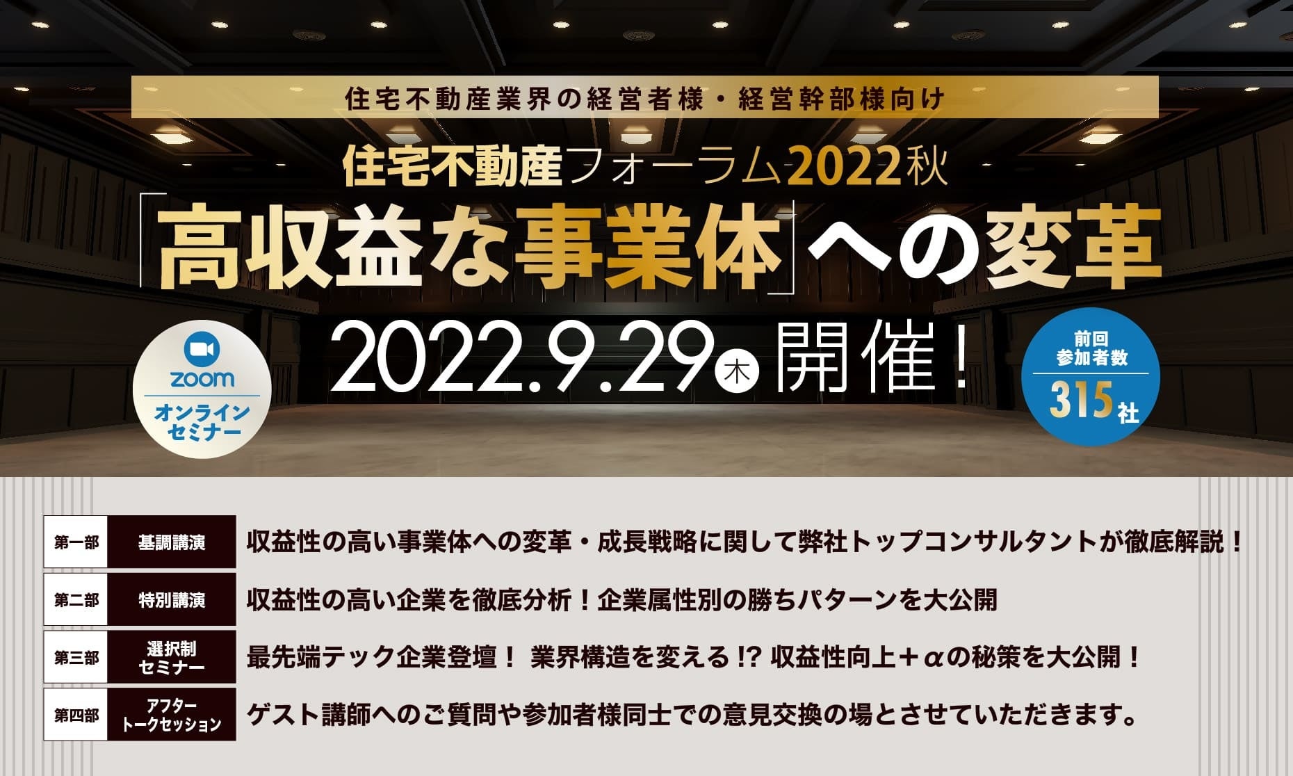 「高収益な事業体への変革」が貴社の関心事と合致する場合は、そのヒントが得られる最高の機会となると自負しておりますので、ぜひお早めにお申し込みください。