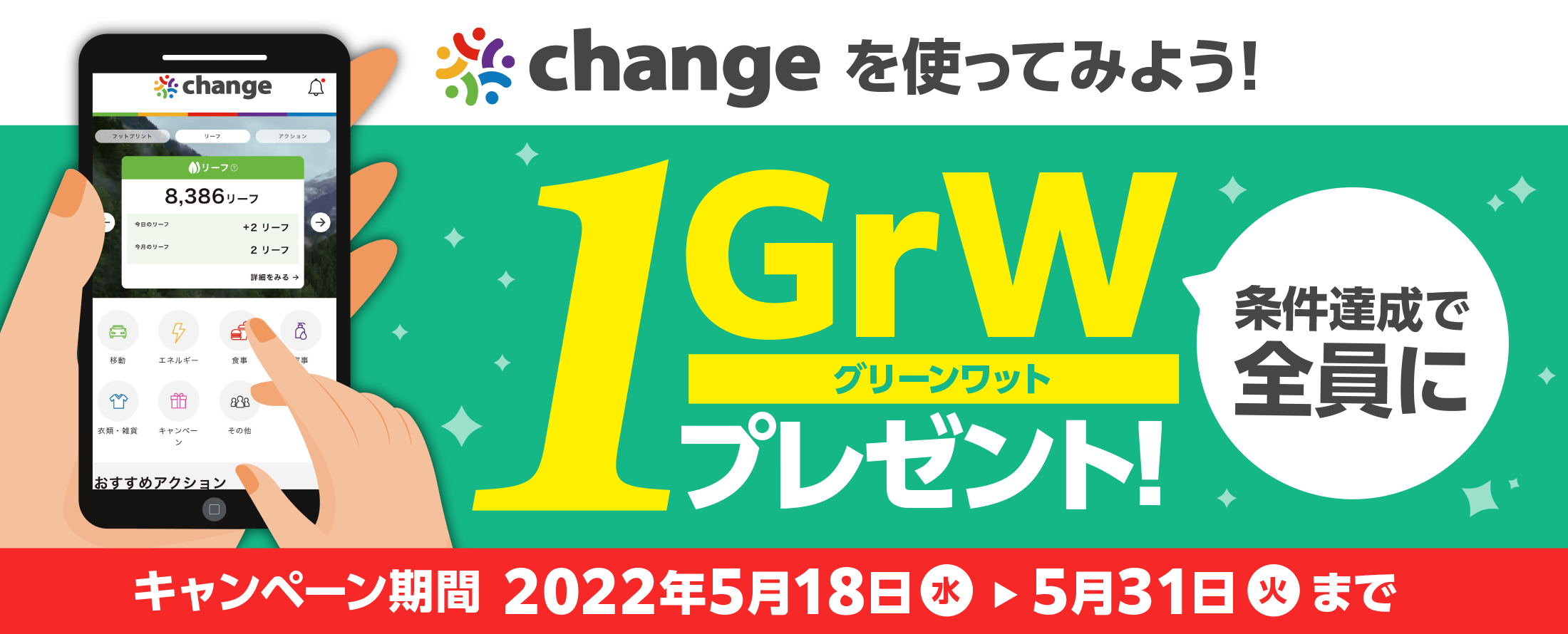 この度、6月の「環境月間」に向け、より多くの方に「change」を使っていただくための企画をご用意いたしました。