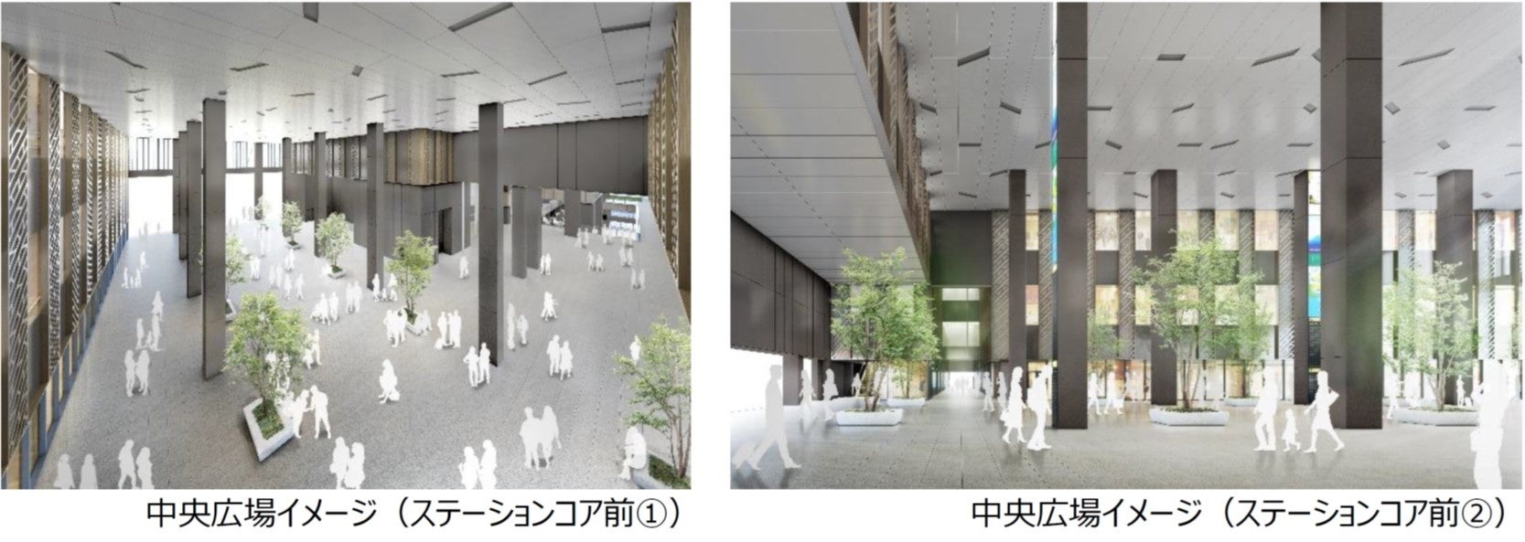 中央広場は、世界貿易センタービルディング及び東京モノレール駅舎の建替えにより浜松町駅中央改札前に整備される大空間の広場です。
