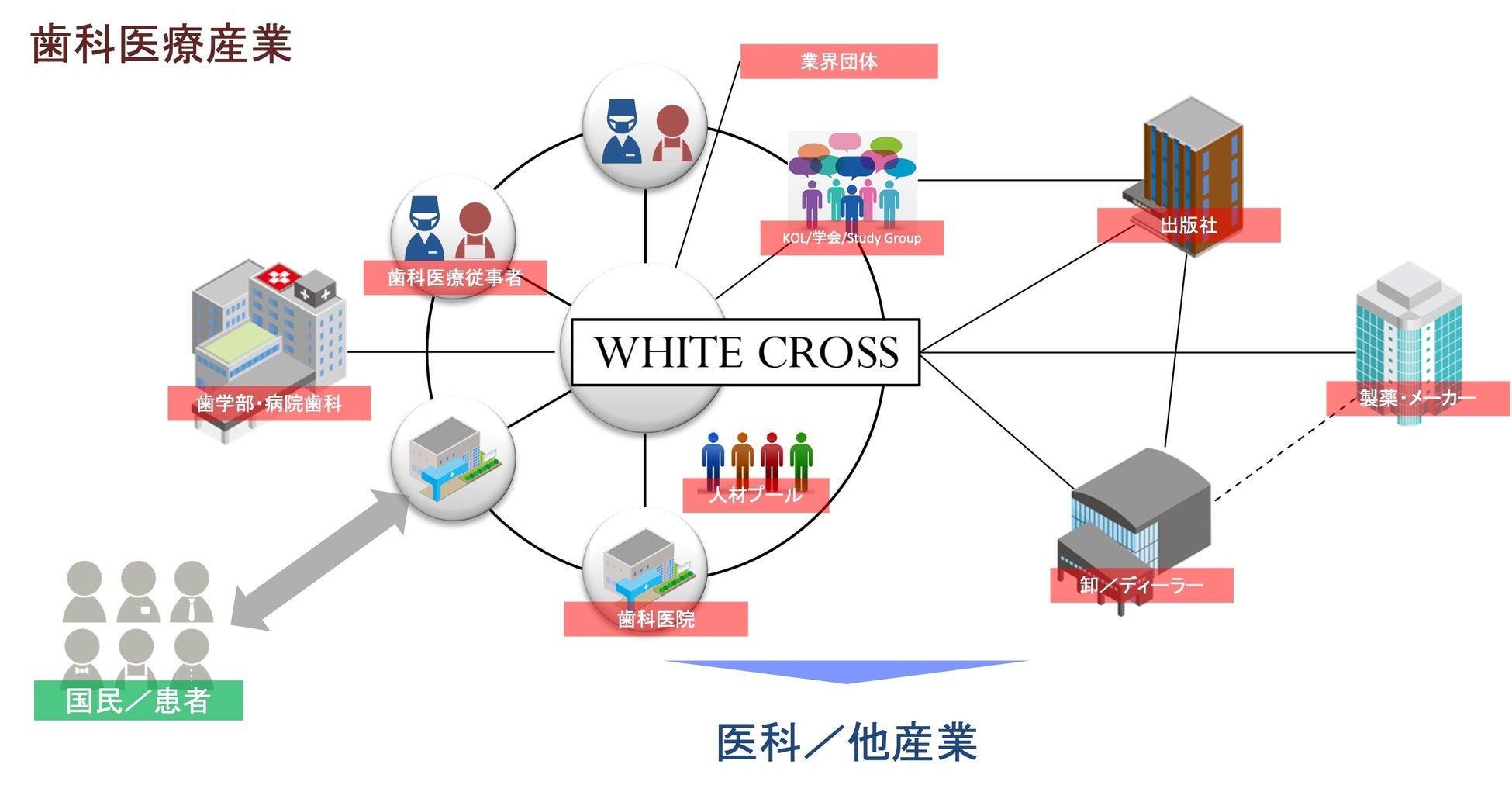 当社は「歯科医療の社会的価値を高める。大樹となり、社員とその家族の幸福を追求する。」をパーパスに、歯科医師、歯科衛生士を中心とした歯科医療従事者に対して、専門性の高い記事やコンテンツを提供するデジタル・プラットフォーム「WHITE CROSS」を運営しています。