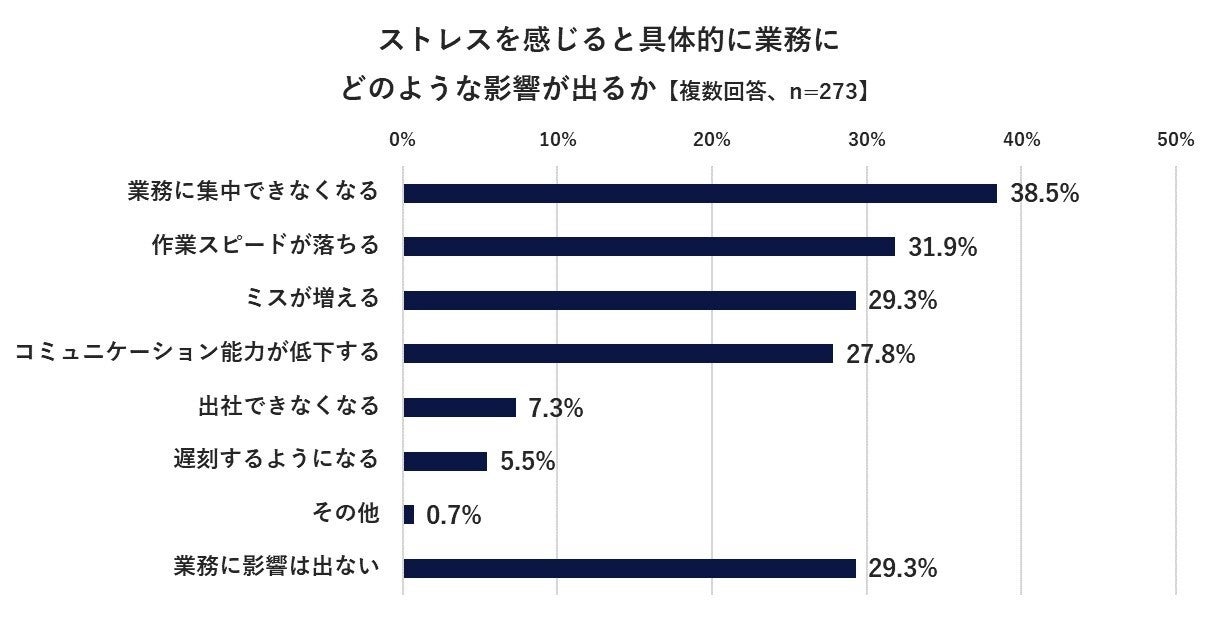 Q2. あなたは、ストレスを感じると具体的に業務にどのような影響が出ますか。(複数回答、n=273)
