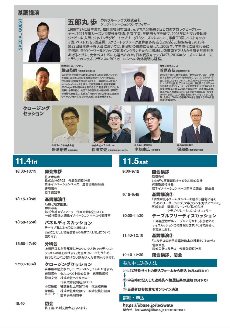 その他、参加上場経営者や登壇する岩手の起業家、最新情報などの詳細については以下の公式サイトからご覧ください。