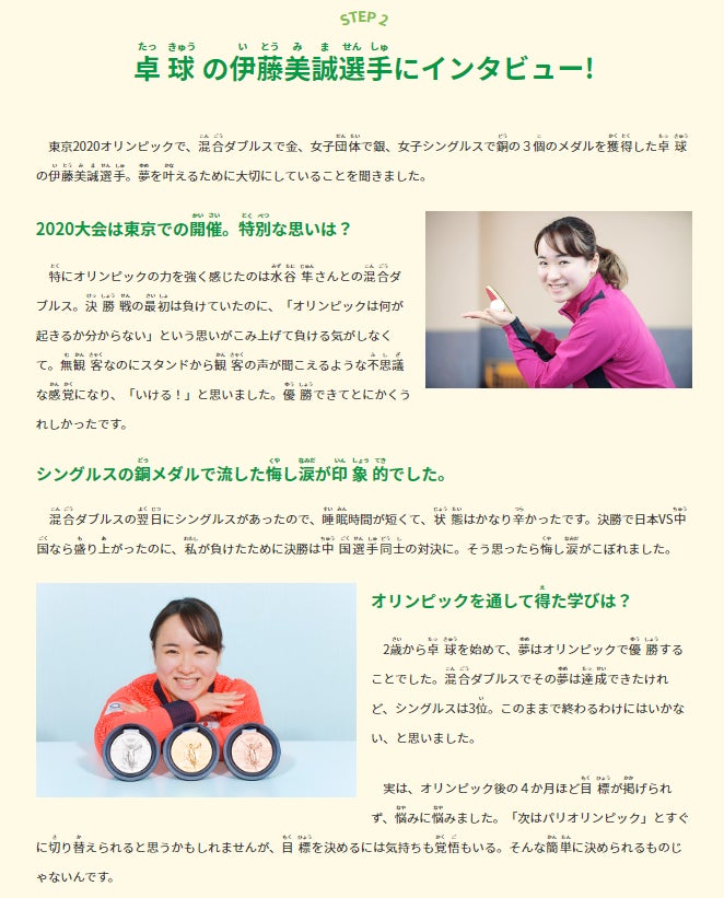東京オリンピック金メダリスト・伊藤美誠選手からの子供たちへのメッセージ(動画あり)