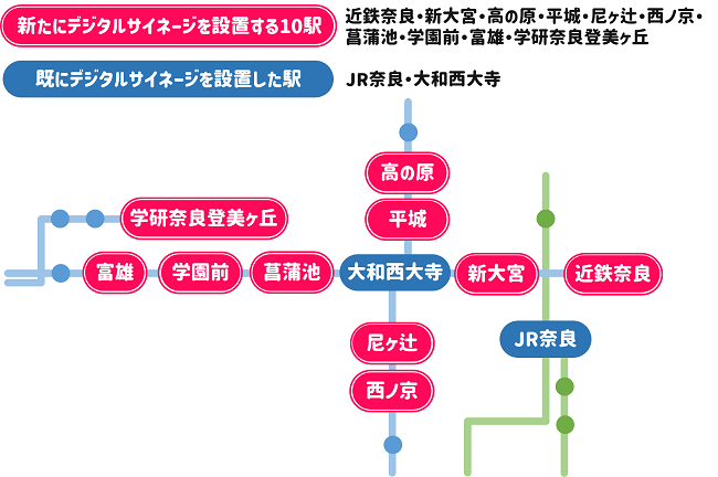 ▼奈良市内の近鉄線10駅にデジタルサイネージを新設(令和4年8月19日発表)