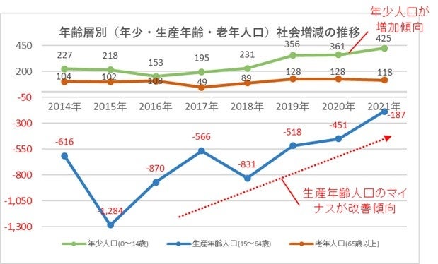 ◇2019年に転入超過に転じて以来、3年連続で社会増を達成している。