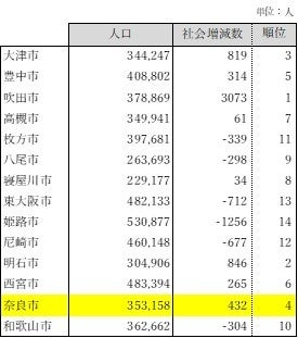 近畿14市で比較すると本市の社会増減数は4位となっています。