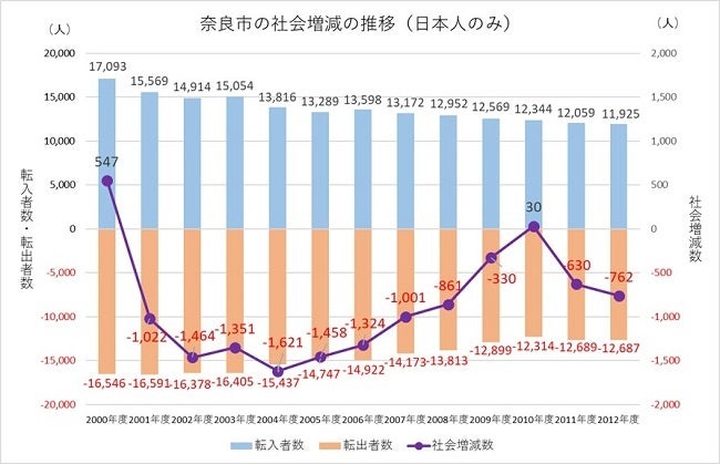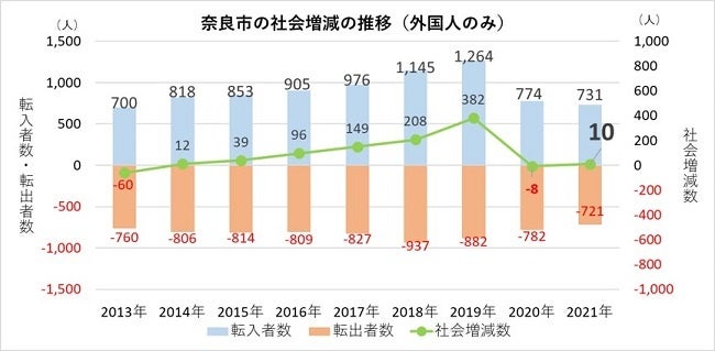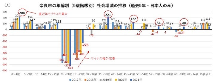 ▼2021年の奈良市人口の転入超過数が過去9年で最大に!(令和4年8月19日発表)