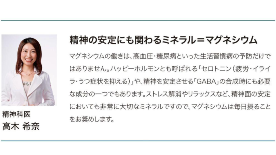 近年、様々な疾患や生活習慣病との因果関係について論文が上がり、注目を集めるマグネシウムは、人間が健康維持に欠かせないミネラルの中でもっとも重要な栄養素です。