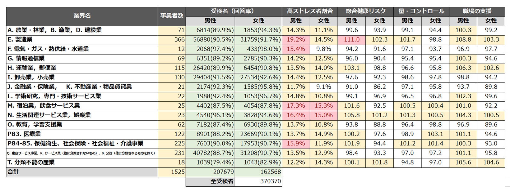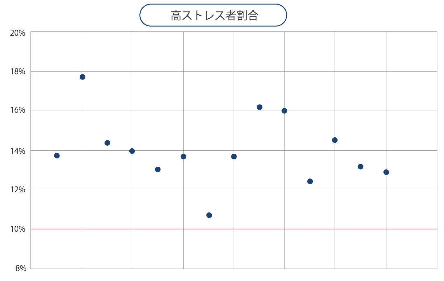 多くの業界で新型コロナ感染症拡大以前から高ストレス者割合が10%を超えるケースは見られていましたが、全業界で10%超を確認したのは今回が初めてとなります。