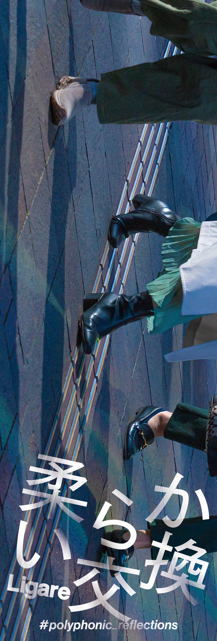 アートフラッグは、大丸有エリアのまちづくりを20年間推進してきたリガーレが大切にする、まちづくりへの想いや価値観を踏まえて、アーティスト達が表現する「言葉」と「写真」の2つの要素で構成されています。大丸有エリアを訪れたさまざまな属性の人たちから発せられた言葉から抽出した多声的(ポリフォニック)なワードと、このエリアの建築、空間、人々や一瞬の光の姿をとらえた写真がフラッグを舞台として響き合い(リフレクション)、街路に新たな風景を立ち上げます。
