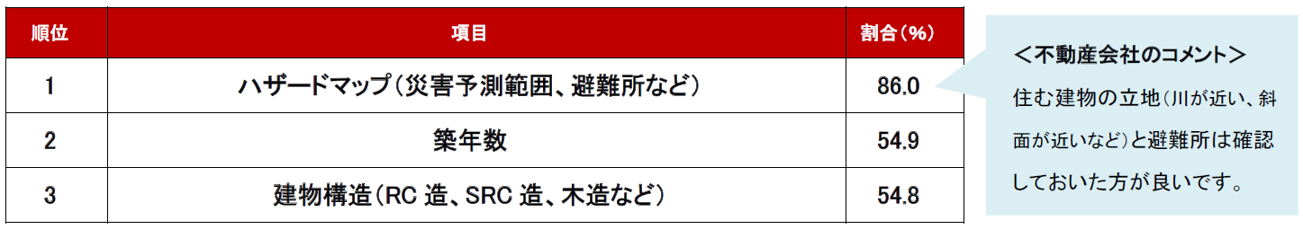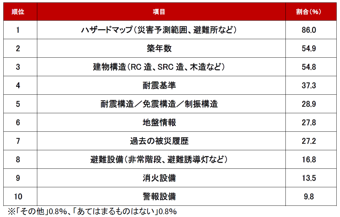 <不動産のプロが選ぶ!「地震に備えるためにチェックすべき物件情報」ランキング 調査結果>