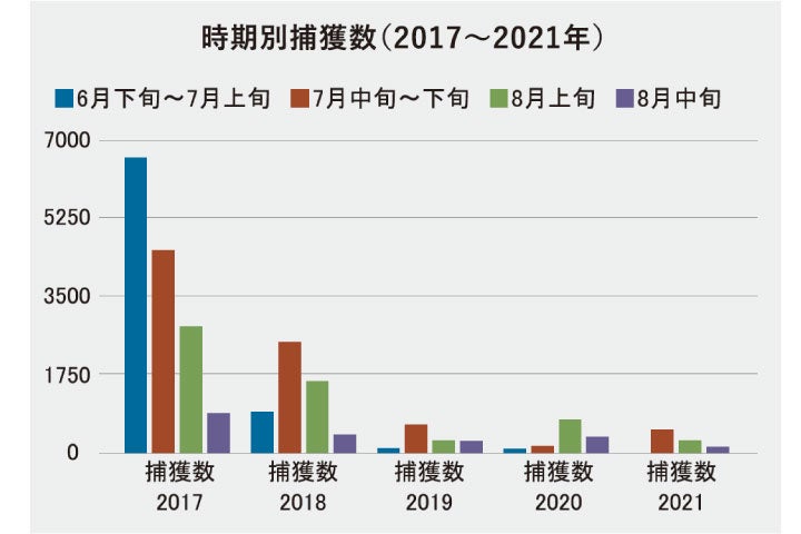 その結果、アブの捕獲数が年々減少し、試験開始当初と比較して、1/6までに減るという結果が得られました。